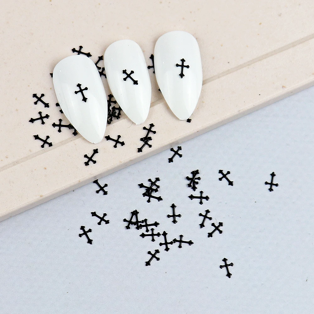 100 pcs Cross Metal Nail Charms Gold Silver Black Metallic Nail Stud Manicure 3d Nail art Decorations Accessories