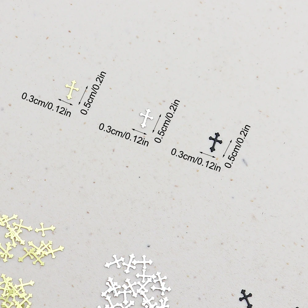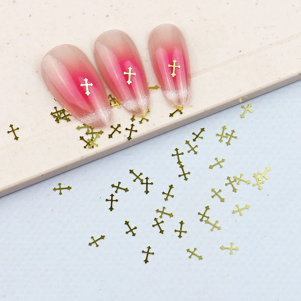 100 pcs Cross Metal Nail Charms Gold Silver Black Metallic Nail Stud Manicure 3d Nail art Decorations AccessoriesSpecifications:Material: metalColor: gold/silverQuantity: 100 PCSPackage includes:100 pcs metal nail decalsNice present:The gold metallic slices can be applied as a nice present to send your wife, girlfriend, mother or sisters, which allow them DIY nail at home without going to salon, showing their good choice with the beautiful and chic nails.Method to use:1. Apply glue on the surface for nails2. Put this nail studs on your nail3. Apply a layer for top coat to get more lasting4. Beautiful and charming nail effect