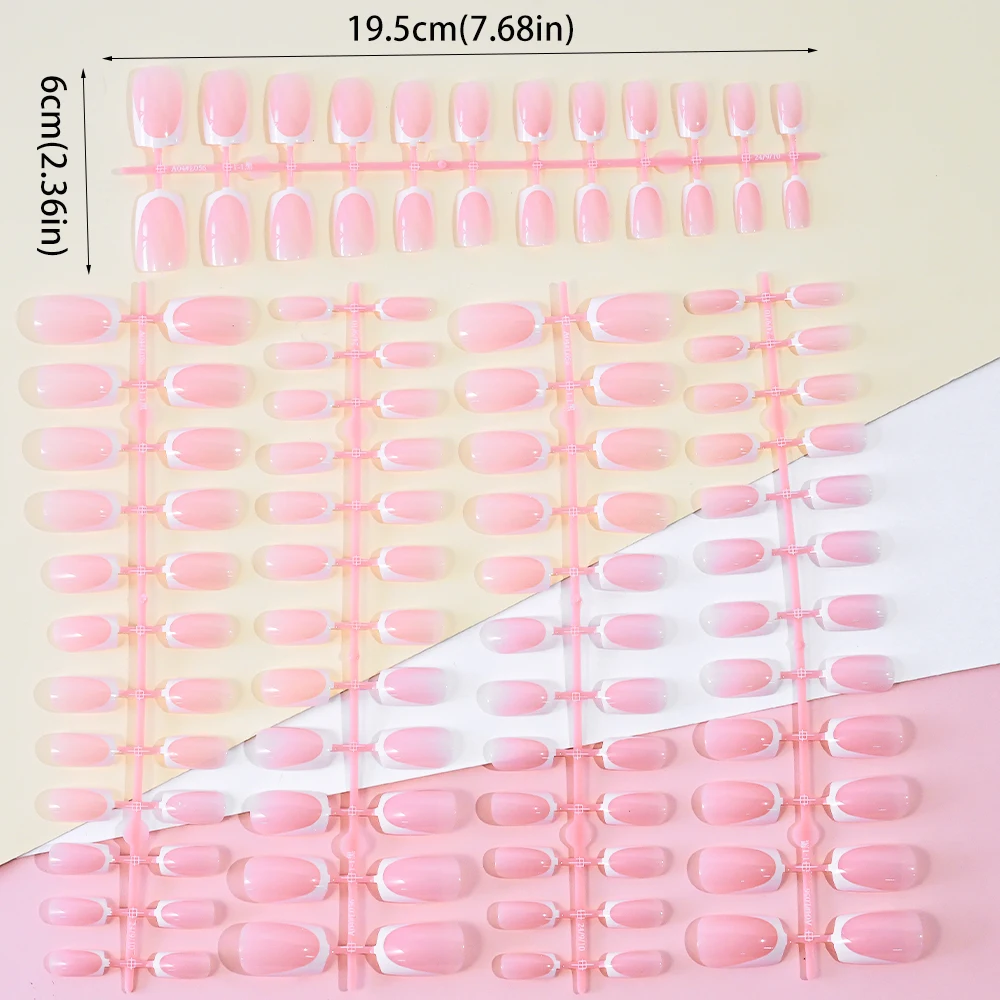 120Pcs Short Square Coffin French Fake Nails Glossy Pink Full Cover Wearable Press on Nails Wearable Acrylic Fake Nails Tips # 1