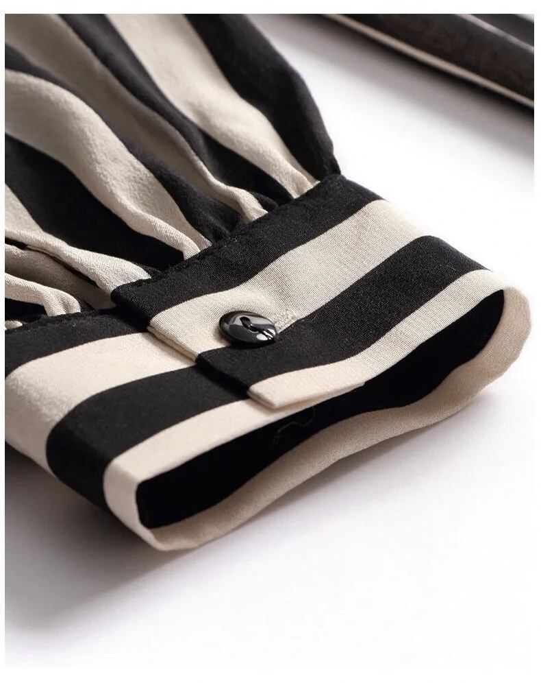 2022 Stripe Office Wear Chiffon Profession Blouses Temperament Fashion Woman Urban Top with Sleeves Ladies Aesthetic Basic Shirt 4