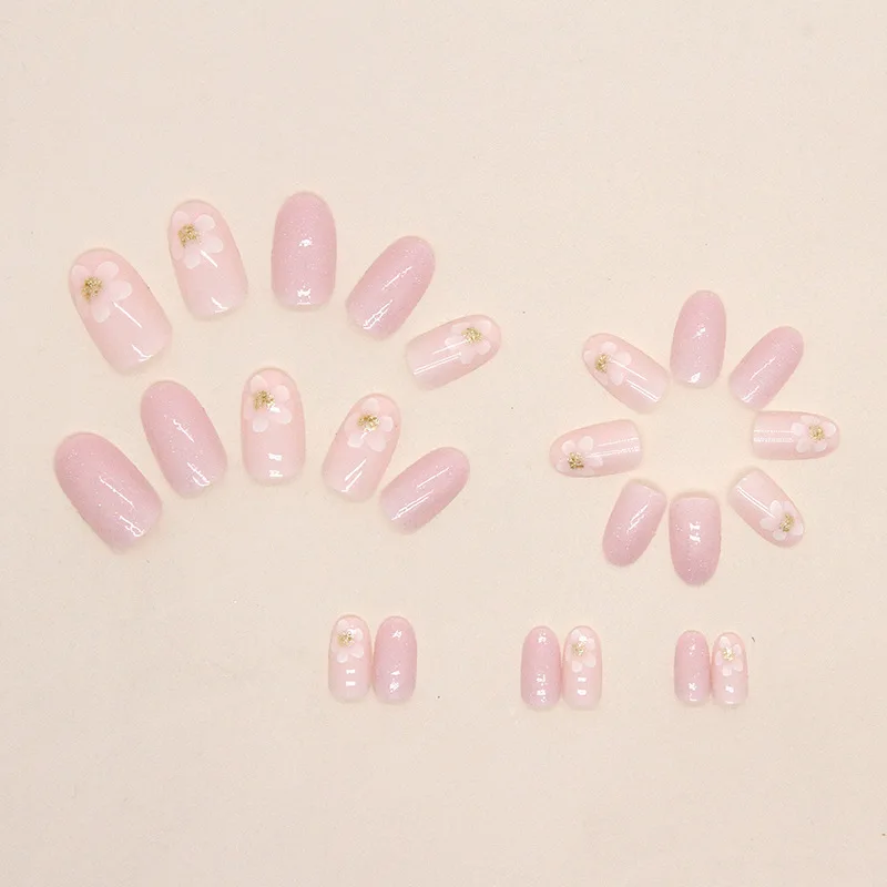Home Health & Beauty Nail Care 24 PCs Short French Simple Flower Nails with 1 Jelly Gel and 1 Nail File