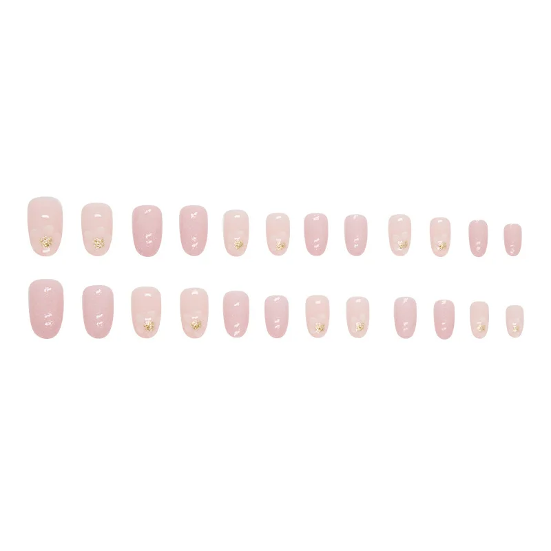 24 PCs Short French Simple Flower Nails with 1 Jelly Gel and 1 Nail File