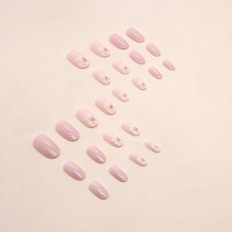 24 PCs Short French Simple Flower Nails with 1 Jelly Gel and 1 Nail File 5
