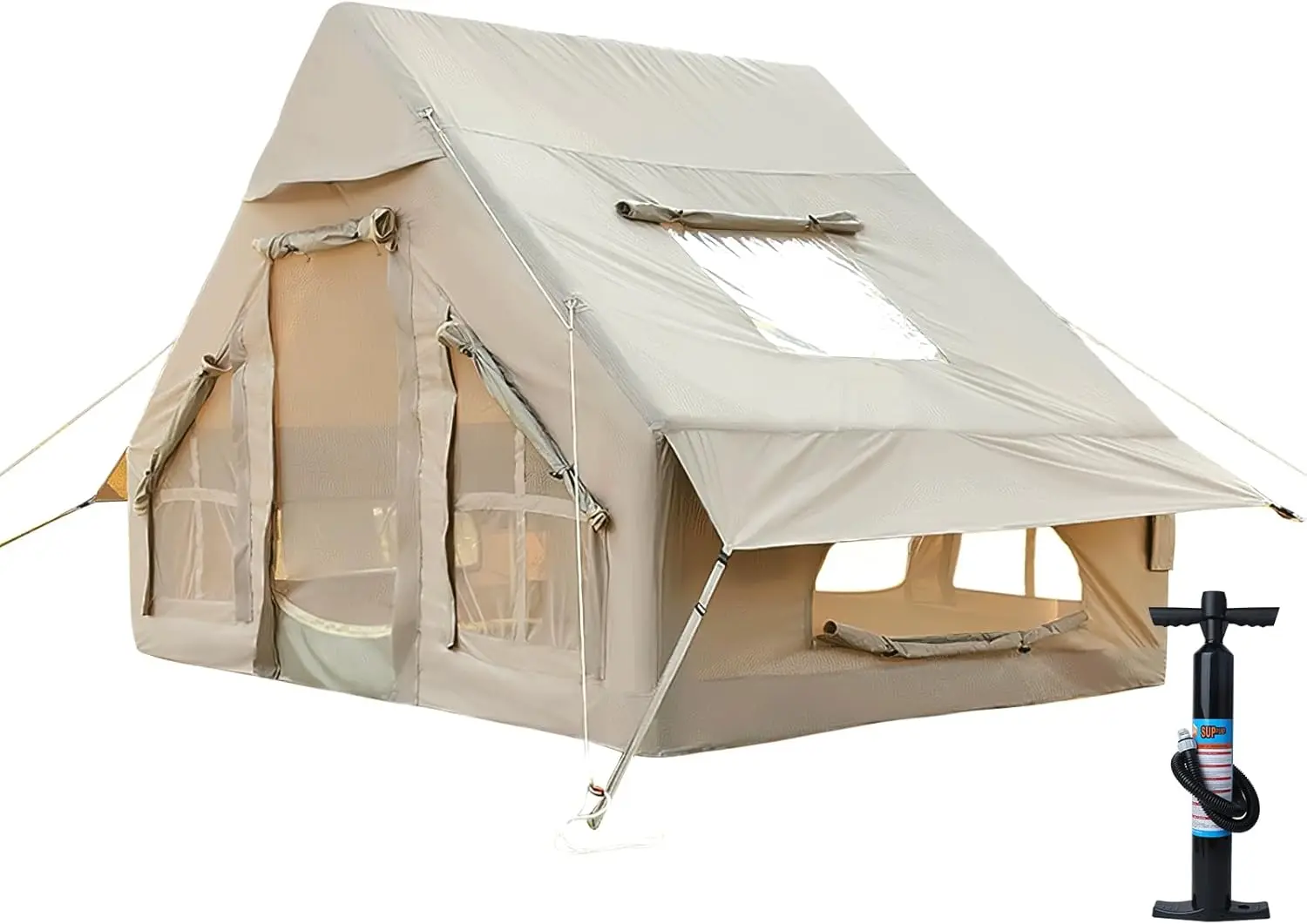 Safety and Easy setup: The inflatable tents for camping has an inflatable self-supporting structure, so there is no need to manually install support rods. It can be set up in four easy steps. Spread the tent , secure and inflate it, and then fix its four corners . The instant tents for camping can be put together entirely by yourself in 5 minutes. With larger support structure and the air chambers the tent can remains stable and keep you safe.