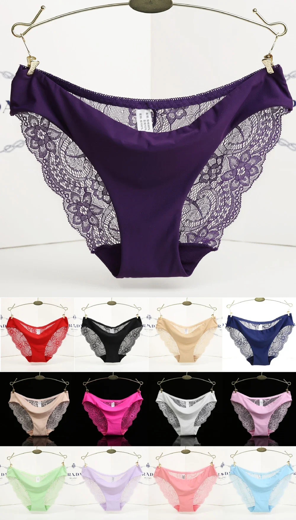 S-2XL!!! Seamless Low-Rise Lace Panties for Women, Breathable Cotton Underwear, Hollow, Splicing, Girls' Sexy Briefs 5