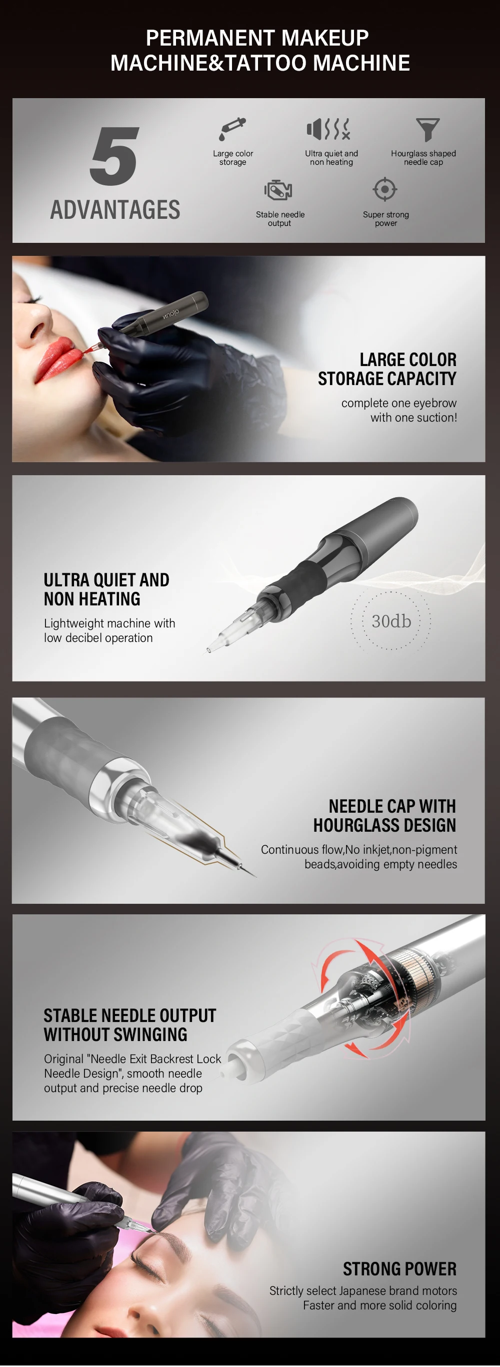Tattoo Machnie Shark New Cool Tattoo Pen For Permanent Makeup Tattoo Machine for Permanent Eyebrow Lips Tattoo PenNote! Plugs have different specifications, generally EU and US. You can note which plug you need when ordering, or you can ask customer service for a note. If you don’t make a note, it will generally be sent according to the country’s default.Specification:Working voltage:5V-12VHigher speed:11250rmpLow noise:30dbFeature:-Utility model patentbackrest support design·avoid swinging needles.-Utility model patenthourglass needle cap·Avoid empty stitches.-2.5mm long needle devi.The perfect weapon forcreating fluffy lines.-Original silicone inlaidhandle.Ultra quiet and non heating:Lightweight machine withlow decibel operation. Strong power:Strictly select Japanese brand motorsFaster and more solid coloring. Stable needle out put without swinging:Original “Needle Exit Backrest Lock Needle Design”, smooth needleoutput and precise needle drop. Needle cap with hourglass design:Continuous flow,No inkjet,non-pigmentbeads,avoiding empty needles.Package List:Tattoo machine*1Plug*1(choose US Plug or EU Plug)Connection cable*1Tattoo needles*30pcsNeedle caps*30pcs