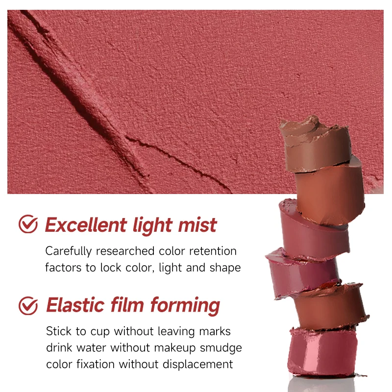 Velvet Soft Mist Matte Lipstick, Long-Lasting,Sweat-Proof, Non-Touch Cup, Smudge-Proof Lip Tint With High Color Rendering